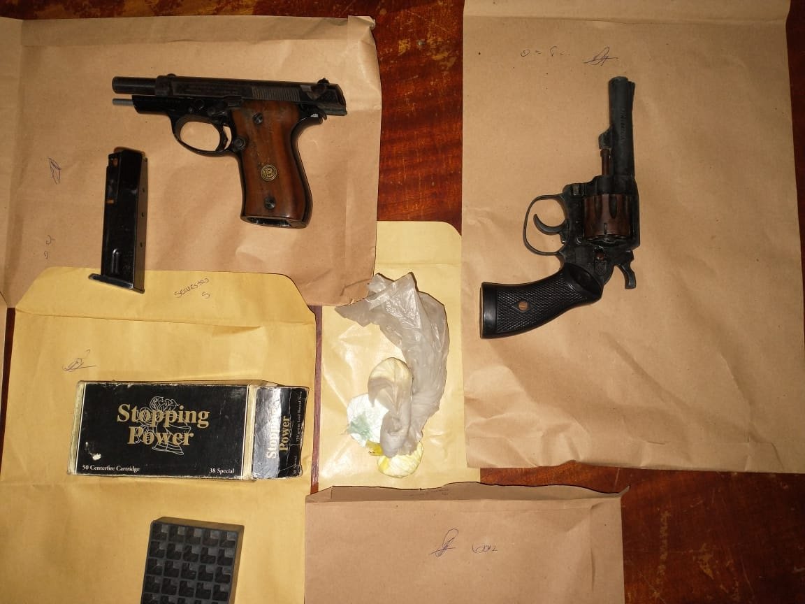 Tras realizarse dos allanamientos, efectivos policiales aprehendieron a tres personas luego de encontrar armas de fuego y drogas en los domicilios en donde se encontraban.