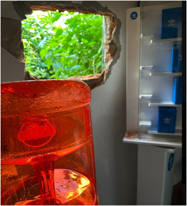 Una vez dentro, trabajaron con herramientas específicas para abrir un boquete en la mampostería, lo que les permitió acceder directamente al sector de cajas y vitrinas. Del lugar sustrajeron: