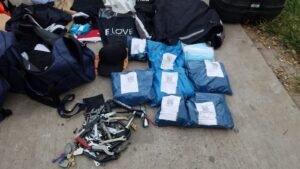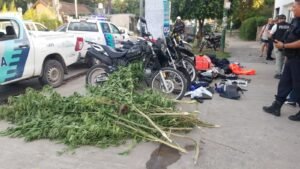 Además, producto de diversos ilícitos, se incautaron diez teléfonos celulares, cuatro cascos de motocicleta, varias autopartes de motocicleta, bolso y campera de empresa Rappi, documentación varias de diferentes victimas, herramientas varias, mochilas varias, billeteras varias, y dos plantas de marihuana de gran tamaño.