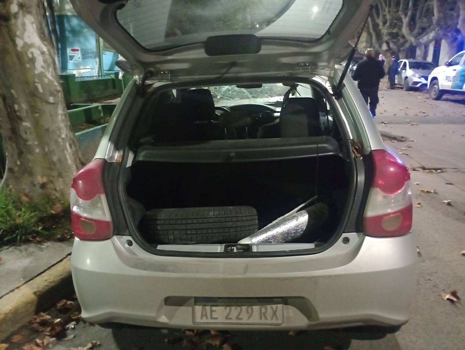 Según el parte policial, la persecución se dio hasta que el Etios chocaron con un poste de luminaria y cableado en Cangallo al 600, culminando así el operativo.