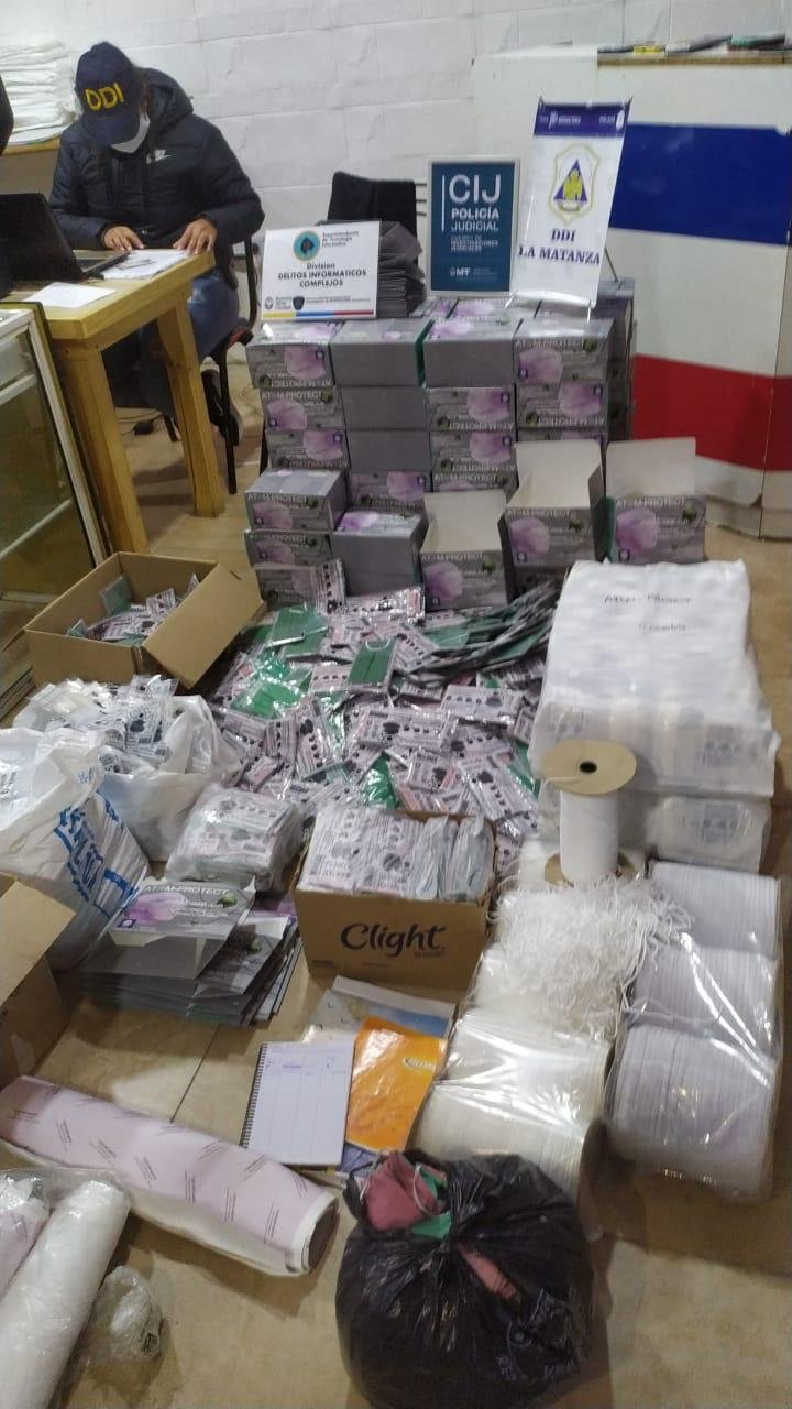 En los allanamientos se logró secuestrar gran cantidad de barbijos terminados y otros en proceso de elaboración, así como mucha materia prima, maquinaria y los moldes con el logo falsificado. Además, en una de las propiedades se encontraron 7 armas de fuego y municiones.