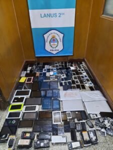La magnitud del operativo simultáneo logró que se incautaran casi 400 piezas todas usadas y en distintos grados de conservación, entre ellas 165 celulares, 105 baterías, 54 carcasas o fundas, 33 tablets y 4 notebooks.