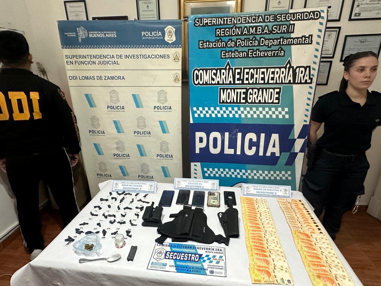 «Al registro de su domicilio se logró su aprehensión del causante, incautando 31 envoltorios de cocaína, picaduras de marihuana, cargador de pistola calibre 22, $50.000 pesos, dos pistoleras y una muslera, un cuaderno con anotaciones varias producto de venta de estupefacientes, una batería de automotor, y cinco teléfonos celulares.