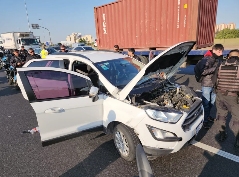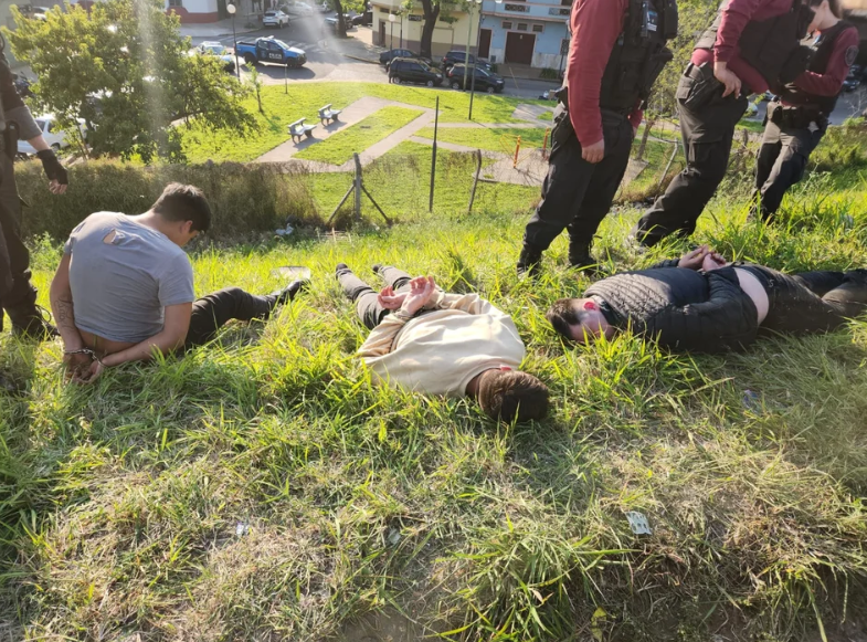 Dos de los ocupantes de la camioneta blanca lograron escapar por el terraplén parquizado de la autopista, mientras que los otros tres fueron inmediatamente detenidos.