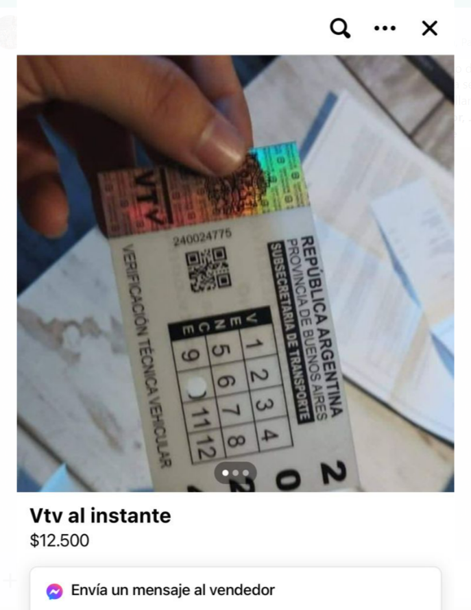 Efectivamente, el sujeto, que se trasladaba en una moto, fue aprehendido en la intersección de Venezuela y Testa, y tras ser identificado, se le incautaron dos sobres cerrados conteniendo documentación y obleas de VTV y dinero en efectivo producto de venta que efectuaba por la sección de ventas de Facebook, Marketplace.