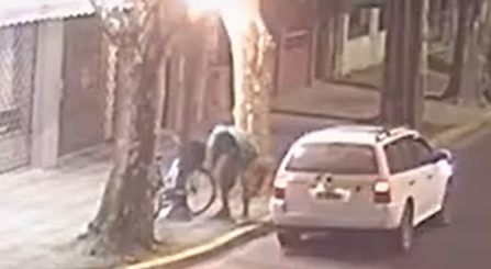 Durante la madrugada, en Dorrego y E. Santamarina, Monte Grande, dos hombres se bajaron de un auto y comenzaron a realizar movimientos sospechosos en torno al cartel nomenclador de calles.