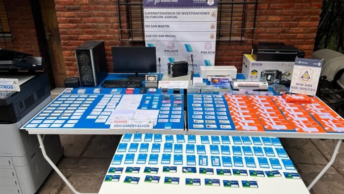 teléfonos celulares, tarjetas de memoria, pendrives, impresoras, plastificadoras, lectores de tarjeta, disqueteras, guillotinas, DNI falsos, más de un centenar de tarjetas SIM (chips para celulares), tarjetas de crédito y débito, posnet, cajas fuertes, automóviles y armas de fuego.