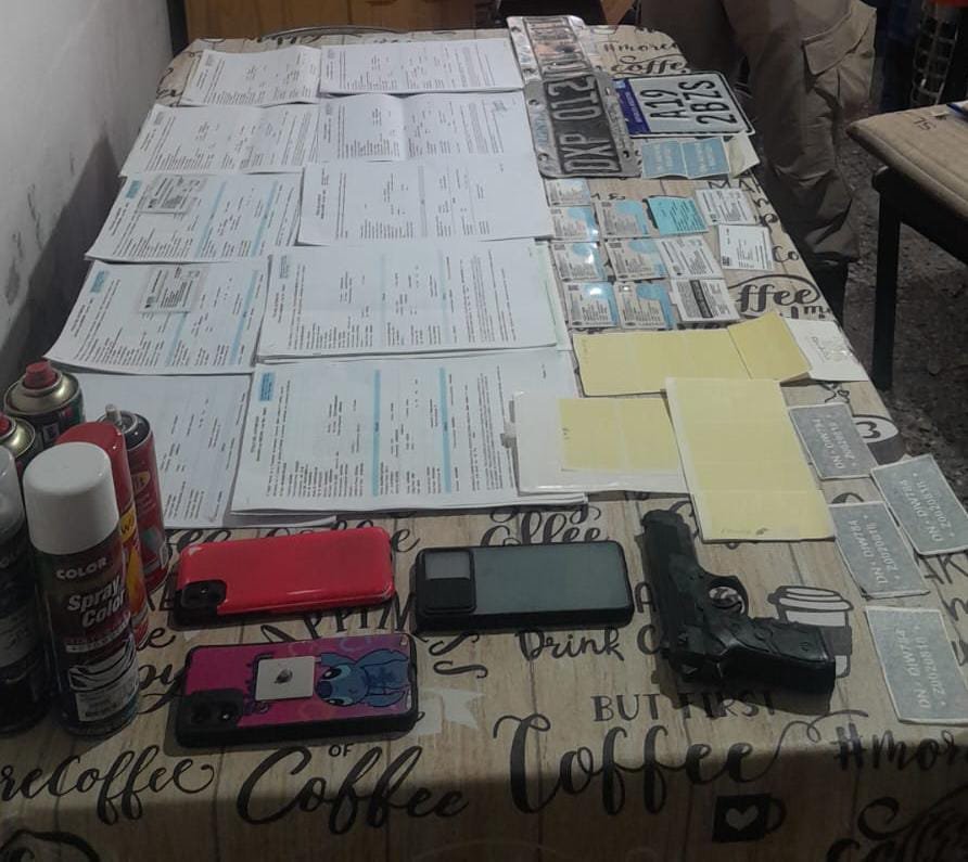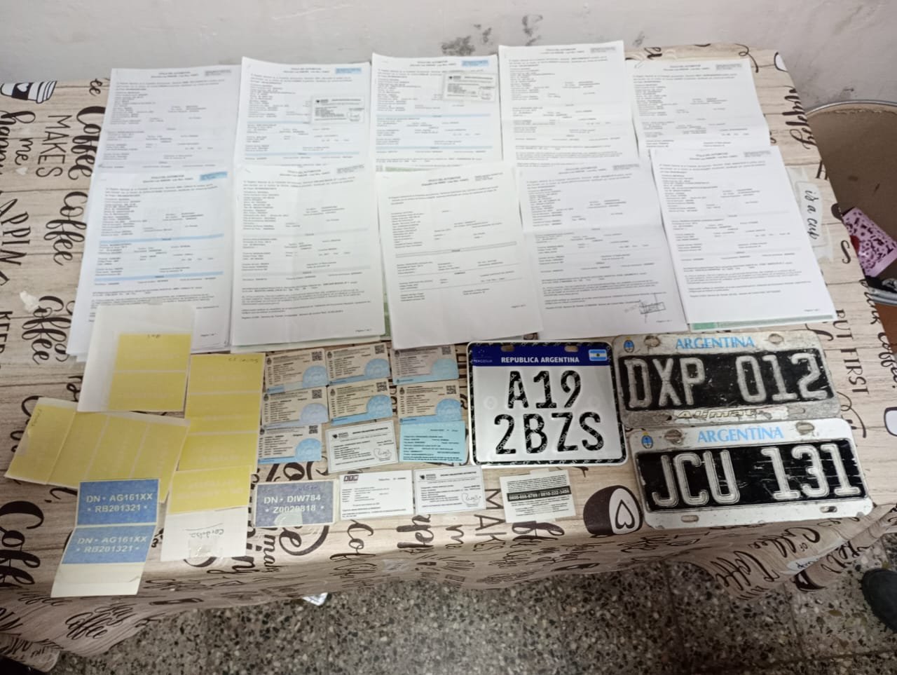 Efectivos detuvieron a dos personas que se dedicaban a crear documentos de vehículos con patentes apócrifas. Además, hallaron unidades automóviles con dominios no coincidentes con sus partes.