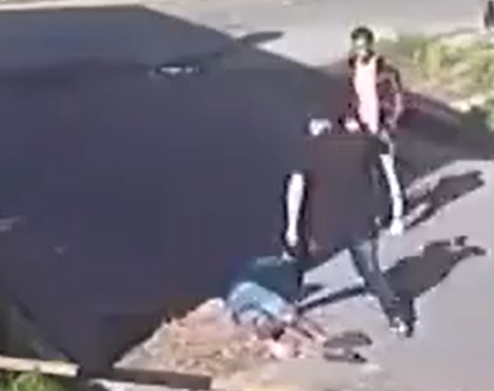El episodio ocurrió cerca de las 8.30 de la mañana de ayer en el cruce de las calles Yatay, entre Hornos y Pasaje Pilar, de la citada localidad del partido de Lanús, en la zona sur del conurbano bonaerense, y quedó filmado por una cámara de seguridad que registró toda la secuencia del ataque a golpes y el crimen.