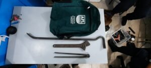 Se les dio la orden de salir que fue acatada y se observó a tres masculinos que fueron reducidos e identificados secuestrándoseles una barreta, guantes de látex color blanco, una tenaza y una llave francesa, herramientas utilizadas para forzar la ventana de reja que da a dicha vivienda.