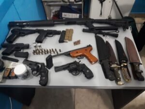 Pero al inspeccionar la vivienda, los uniformados hallaron una enorme cantidad de armas de fuego, como pistolas, revólveres, escopetas, silenciadores, miras telescópicas, silenciadores, municiones de guerra, balas y balines; y también armas blancas, como cuchillos de todo tipo y tamaño de hojas. También se encontró documentación de algunas de las armas y permisos de tenencia.