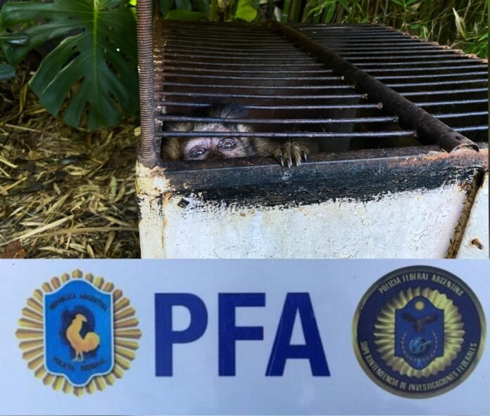 Con las pruebas aportadas por los detectives, el Juzgado Federal N° 2 de Lomas de Zamora a cargo del Dr. Luis Alberto Armella, Secretaría N° 6 del Dr. Marcos Frezzini ordeno el allanamiento de la finca donde se logró rescatar a una hembra de mono Caí (“Sapajus Apella”) originaria del norte argentino y otros países del norte de américa del sur, cercanos a la cuenca amazónica, la cual se encontraba encerrada en una jaula de pequeñas dimensiones, a la intemperie y en un deplorable estado de cuidado. Además dos tortugas de agua y distintas aves exóticas. Por otro lado se incautaron cueros y especies taxidermizadas provenientes de la caza furtiva correspondientes a ciervo dama, Ciervo Colorado y cueros provenientes de zorros y puma.
