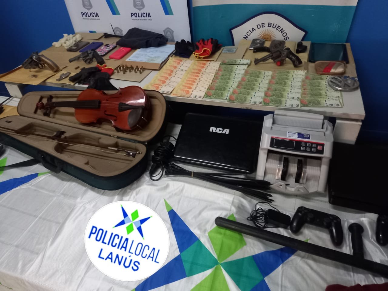 Durante la requisa fueron secuestrados dos revólveres calibre 22 largo, un grip de pistola GLCK y municiones de diferentes calibres, una contadora de billetes, guantes negros, precintos (elemento con el que las víctimas eran maniatadas durante la entradera), la suma de 37 mil pesos, las prendas con las que se los visualiza a través de las cámaras de seguridad y los vehículos.