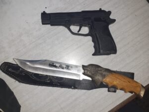 , localidad donde la Comisaría 5° de Esteban Echeverría había labrado un alerta a requerimiento del mismo coche, y se halló una réplica de arma de fuego, una cuchilla con una hoja de 20 centímetros.
