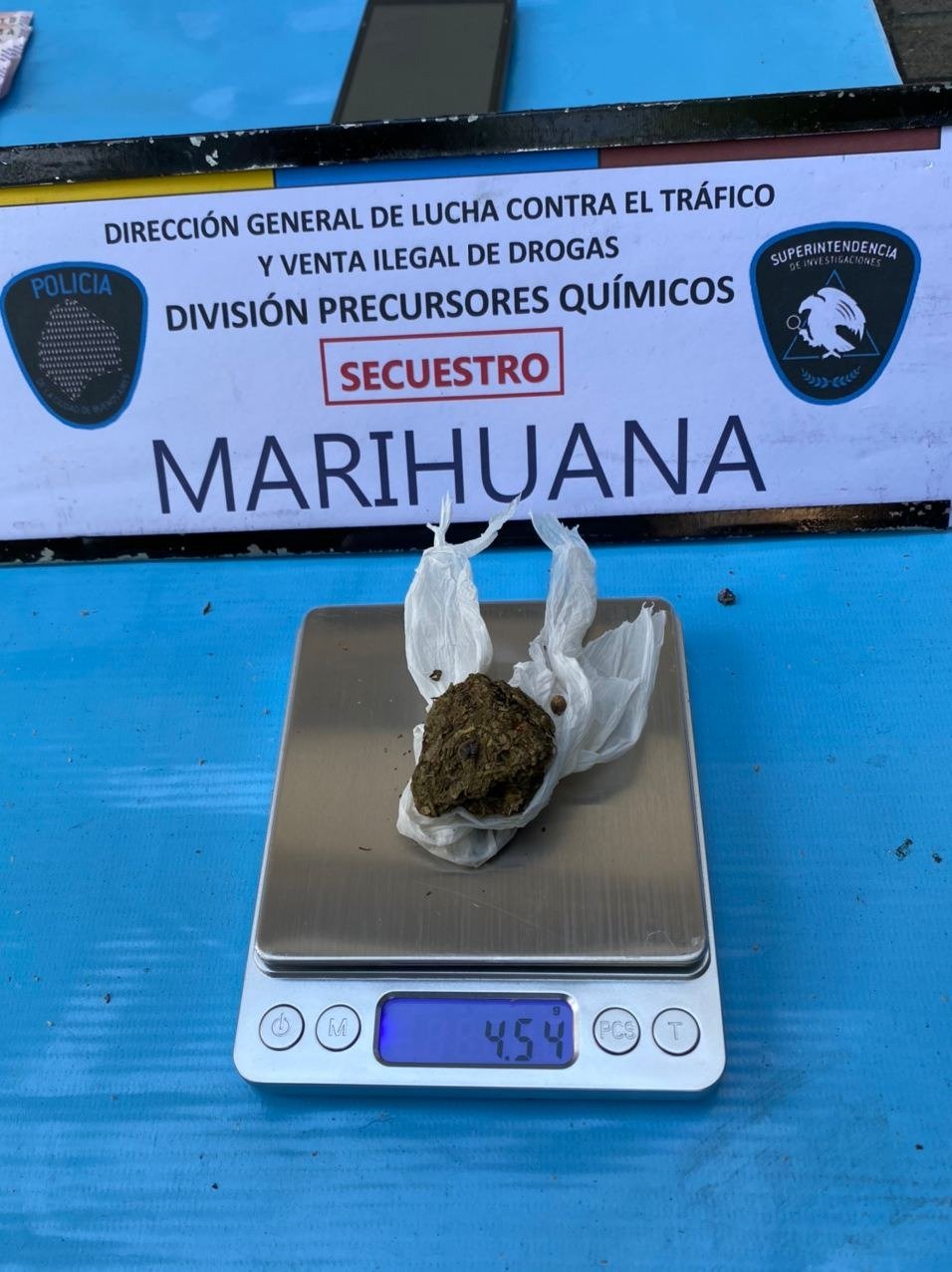 El detenido, de 27 años, también tenía en su poder más de 4 gramos de marihuana, 1.400 dólares y 6.290 pesos en efectivo.
