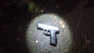 La policía halló en el automóvil una réplica de pistola color negra, y el menor de 15 años tenía entre su ropa una pistola Bersa calibre 22, sin cartuchos ni cargador.