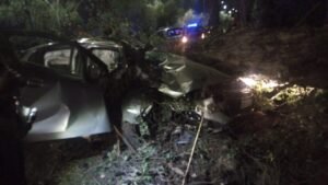 Bomberos de la Ciudad Estación 10 de Villa Lugano lograron extraer del vehículo a dos de los imputados, al tiempo que constataron que el conductor estaba fallecido.