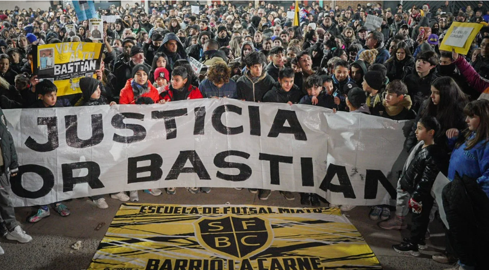 «Justicia por Bastián», rezaba una de las banderas que sostenían los vecinos, muchos de ellos chicos de la misma edad que el fallecido.