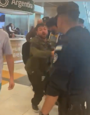 “¿A quién le robé?”, se lo escucha vociferar a Grabois, visiblemente enojado, y arrastrado por la Policía que buscaba cortar con el intercambio. “A nosotros, los argentinos”, le respondió otro de los pasajeros.