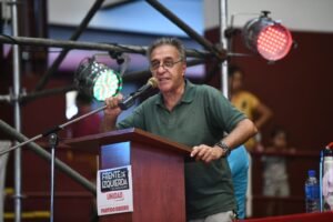 Asimismo, manifestó que «esta gran crisis interpela a la izquierda, sobre todo porque existe el peligro que el enorme y justificado descontento popular sea canalizado por una derecha reaccionaria como Milei, Espert o Patricia Bullrich».