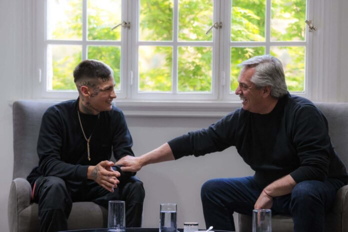 El presidente Alberto Fernández recibió al exitoso cantante popular Elián Ángel Valenzuela, conocido como L-Gante, en la residencia de Olivos, en un encuentro distendido en el que ambos dialogaron sobre las necesidades de la juventud y la importancia de la educación, entre otros temas.