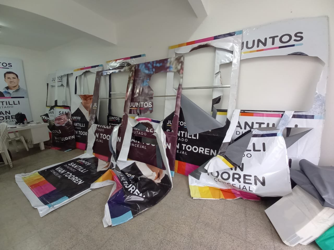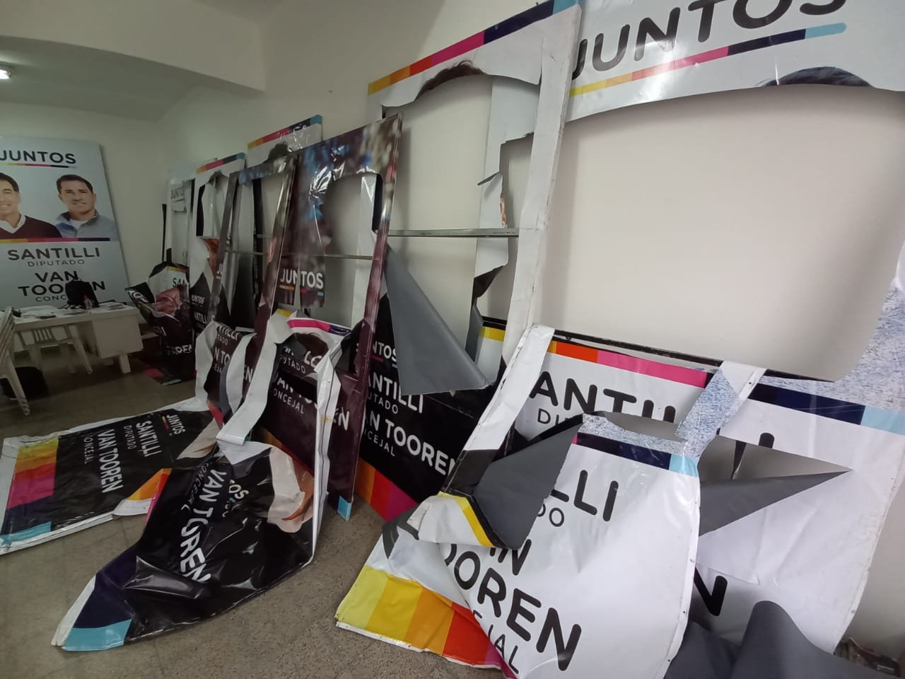 Según informaron, la rotura de carteles no es algo nuevo para este sector encuadrado en la interna de Juntos a nivel local: ya cortaron 15 carteles y en la semana sufrieron el robo de 40 carteles en solo 3 horas, a plena luz del día y en diferentes puntos del distrito.