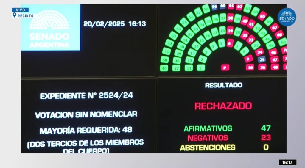Entre los votos negativos, además de Vischi, se sumaron los radicales Víctor Zimmerman (Chaco), Stella Maris Olalla (Entre Ríos), Mariana Juri (Mendoza), Eduardo Galaretto (Santa Fe) y Mercedes Valenzuela (Corrientes).