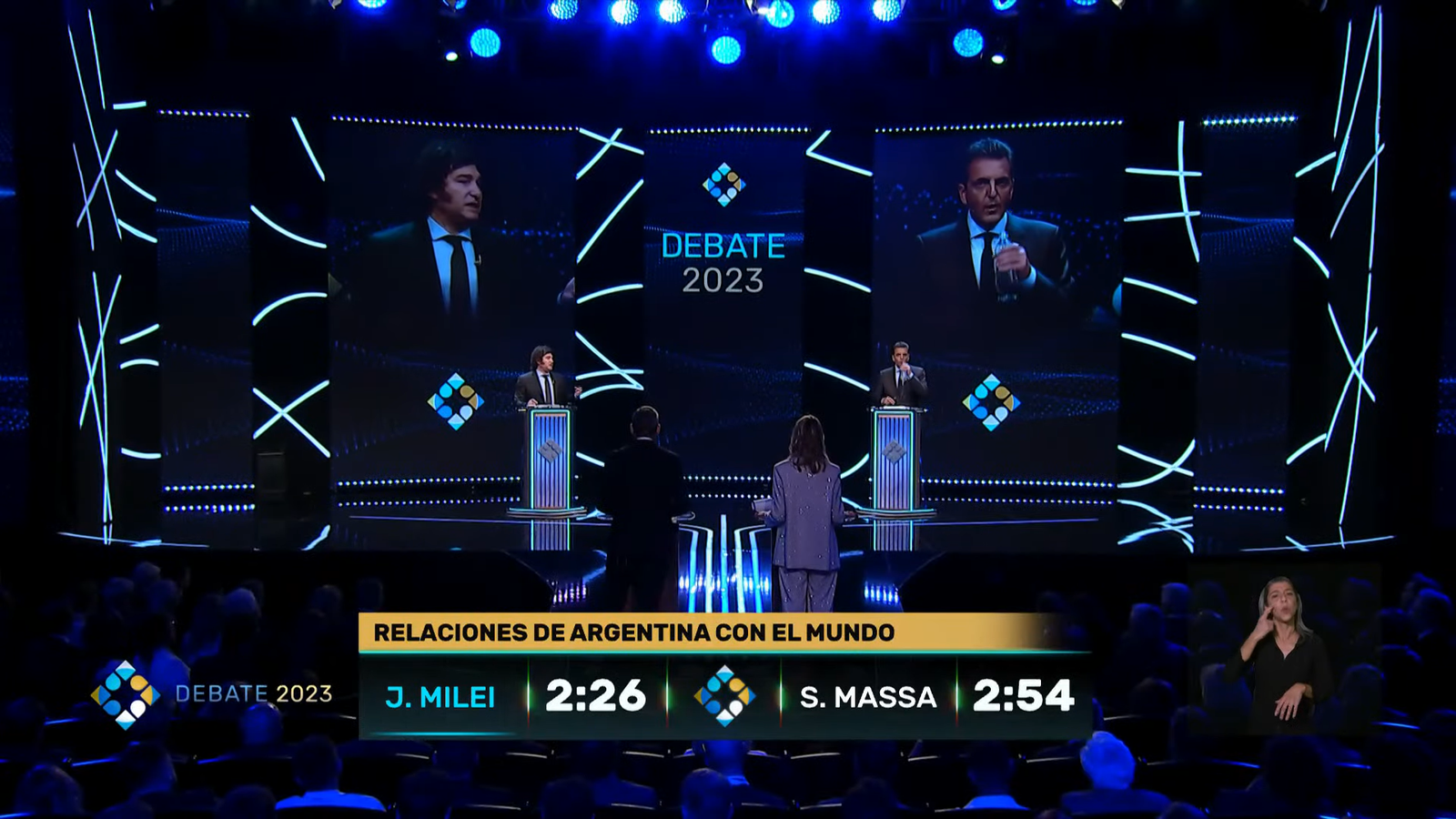 El candidato de Unión por la Patria y el de La Libertad Avanza, Javier Milei, cruzaron críticas, plantearon sus propuestas y buscaron captar el voto de los indecisos. El evento fue transmitido por varios canales de televisión y plataformas de streaming.