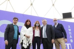 Y finalizó: “Nada nos frenó a la hora de seguir con las políticas que Cristina inició en su primer mandato, políticas de ampliación de derechos. Hicimos la ley del IVE y de los 1000 días. E hicimos obligatorio incorporar personas transexuales al trabajo del Estado nacional. Entregamos el DNI 1000 de una persona transexual. Garantizamos terminar con el criterio binario que el documento exigía”.