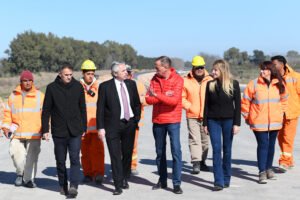 Acompañado por la intendenta local, Marisa Fassi; el administrador general de Vialidad Nacional, Gustavo Arrieta, y el subadministrador, Alejandro Urdampilleta, el mandatario supervisó el avance de las obras de la variante, que forma parte del proyecto de transformación en autopista de la Ruta 3 en una traza de 9,6 kilómetros de extensión, mediante una inversión de 13.414 millones de pesos.