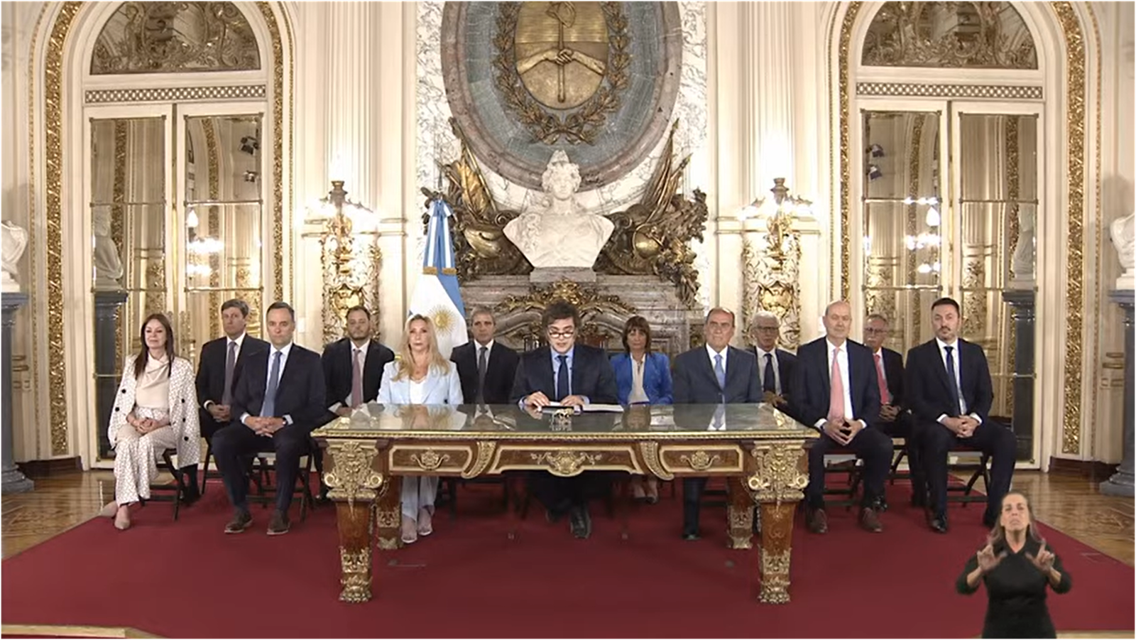 El líder libertario volvió a diferenciarse de “los políticos” y anticipó que en 2025, a pesar de haber elecciones, desde la Casa Rosada continuará el ajuste: “A diferencia de lo que suelen hacer los políticos, que en los años electorales se dedican a despilfarrar la plata de todos los argentinos como si fuera propia en búsqueda de votos, nosotros vamos a hacer algo distinto: Vamos a continuar nuestro programa de ajuste para poder bajar impuestos y devolverle el dinero al sector privado. En esa línea vamos a hacer una reforma impositiva, una reforma previsional, una verdadera reforma laboral; una reforma a las leyes de seguridad nacional, una profunda reforma penal, una reforma política, y otras tantas reformas que el país se debe hace décadas”.