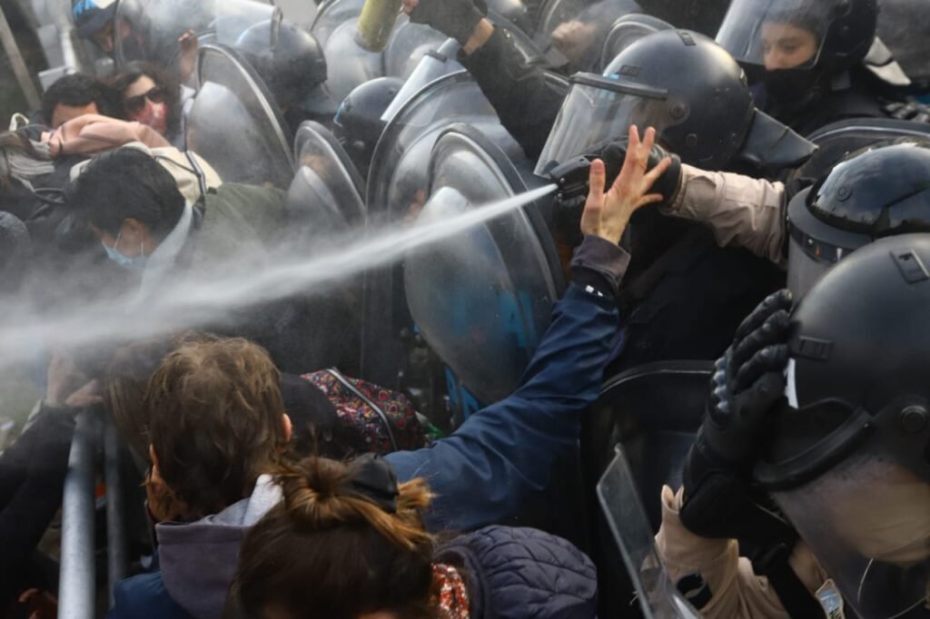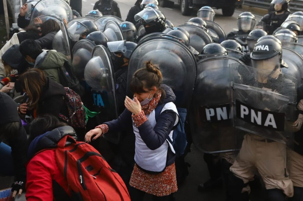 Estudiantes del Instituto de Formación Docente 35 de Monte Grande denunciaron esta mañana la “salvaje represión” sufrida por parte de Prefectura y Policía Federal en Puente Pueyrredón quienes con golpes y gases avanzaron sobre la columna de manifestantes, incluyendo contra alumnos quienes llegaron para reclamar junto a organizaciones políticas, de trabajadores y sociales.