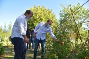 En primer lugar, junto a la diputada provincial Cristina Vilotta, recorrieron la la Granja Educativa del Municipio, emplazada sobre 16 hectáreas y que tiene huerta agroecológica con más de 50 especies y cuya producción se reparte entre instituciones locales. Estuvieron asimismo el secretario de Producción, Empleo y Formación Profesional de Brown, Federico Sassone; y el director de la Granja Municipal, Nicolás Izaguirre.
