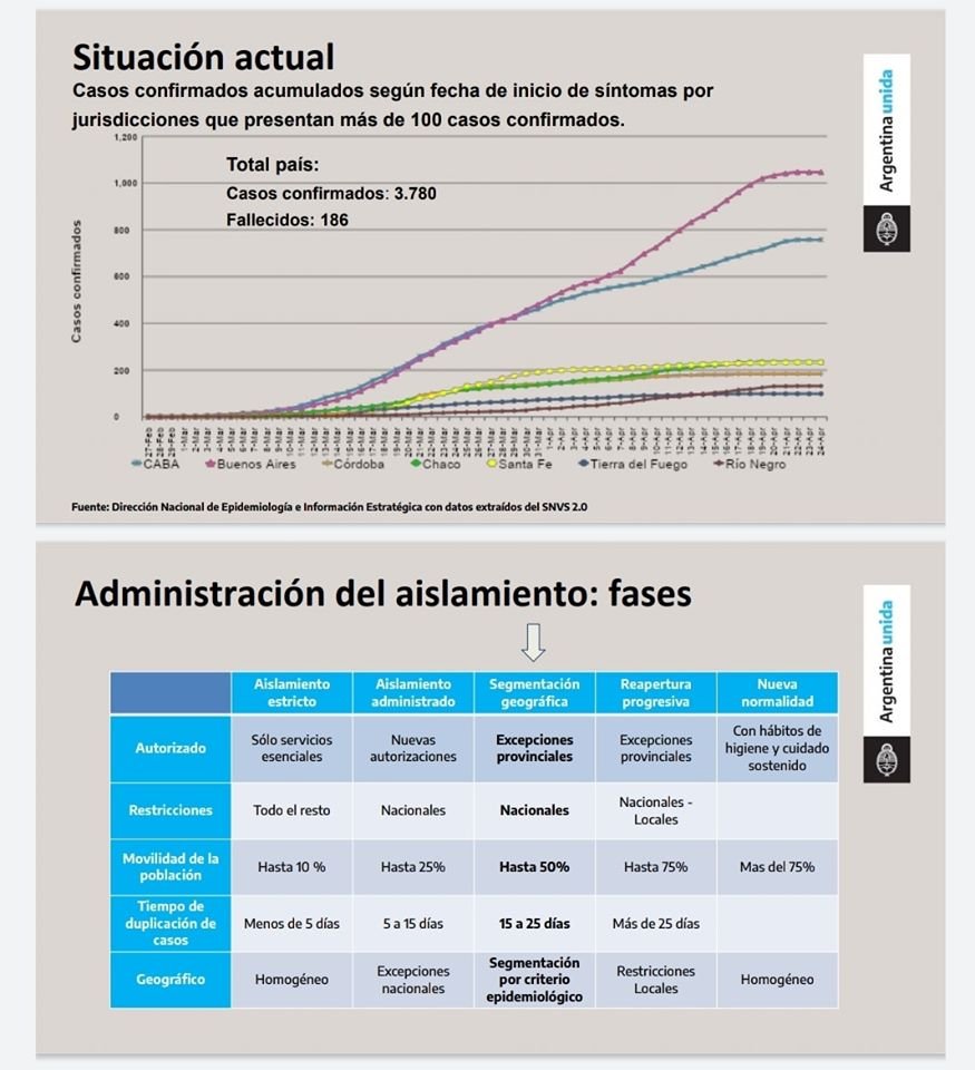 «Pasamos de un aislamiento estricto a un segundo momento con un aislamiento administrado y ahora empieza esta tercera etapa», en la que «dejamos en manos de autoridades provinciales manejo de que actividades se pueden abrir», dijo Fernández y adelantó que «vamos a permitir que hasta la mitad de la población ya se movilice».
