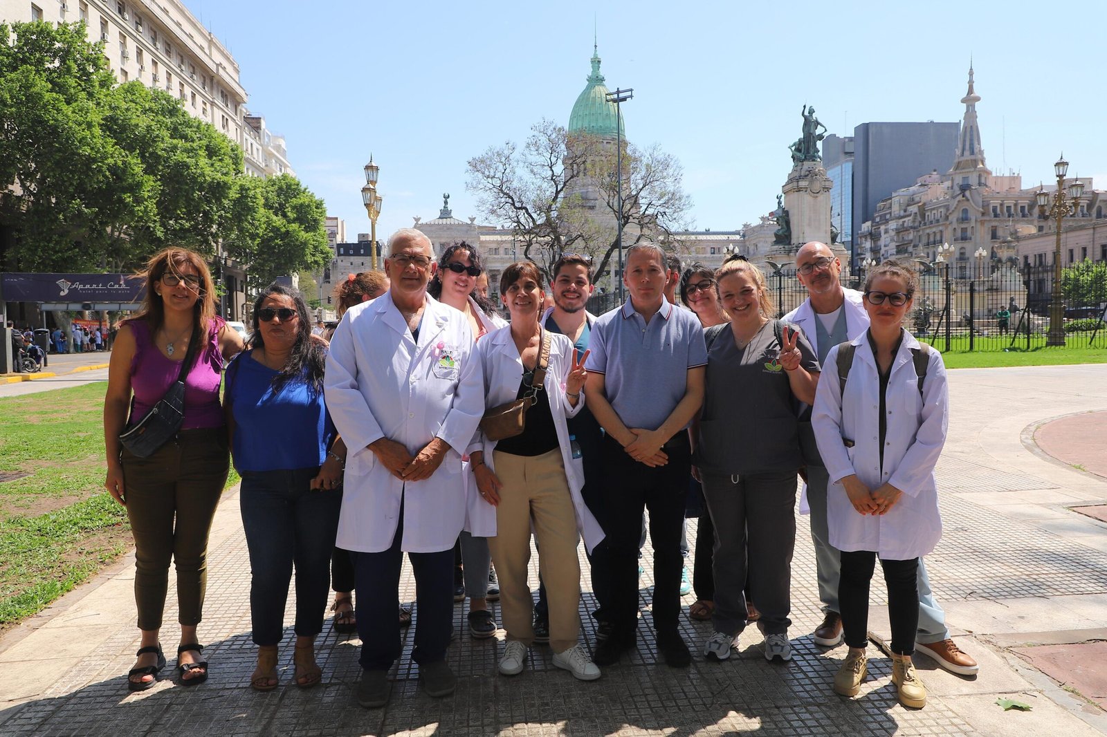 La masiva movilización reunió a miles de trabajadoras, trabajadores y profesionales de los hospitales Garrahan, Bonaparte y Posadas, residentes de salud que dependen del Ministerio de Salud de la Nación, estudiantes universitarios, personal docente y no docente y organizaciones gremiales de la salud y la educación.