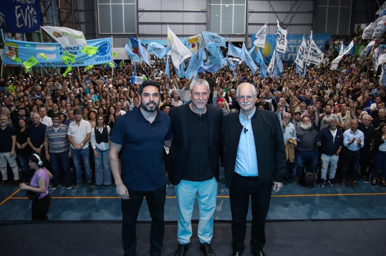 Junto al intendente local y al primer candidato a diputado nacional por Fuerza Patria, estuvo presente también el candidato Hugo Moyano (h).