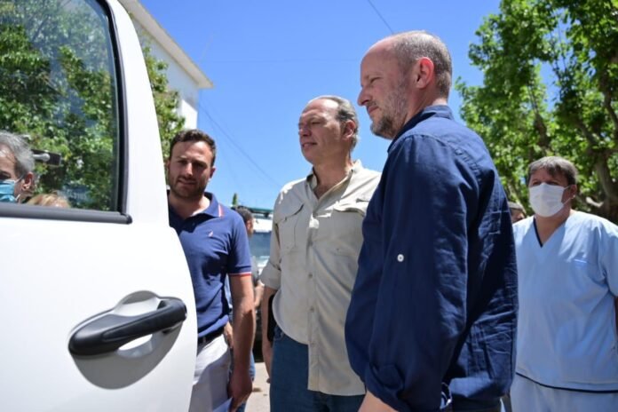 El jefe de Gabinete de Ministros del Gobierno de la Provincia de Buenos Aires, Martín Insaurralde, visitó el distrito de 25 de Mayo junto al ministro de Seguridad, Sergio Berni, el intendente Hernán Ralinqueo y funcionarios locales. Durante la jornada, participaron de la puesta en funcionamiento de 6 patrulleros y 3 ambulancias para la ciudad.