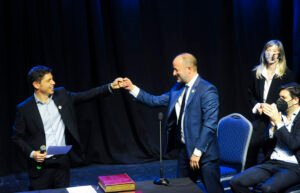 Ante un Teatro Metro de La Plata colmado de dirigentes políticos, Kicillof les pidió a los nuevos ministros que “además del afecto y los aplausos que reciben» desplieguen el compromiso propio de «un gabinete militante» y, en ese sentido, recordó unas palabras suyas del día de la asunción.