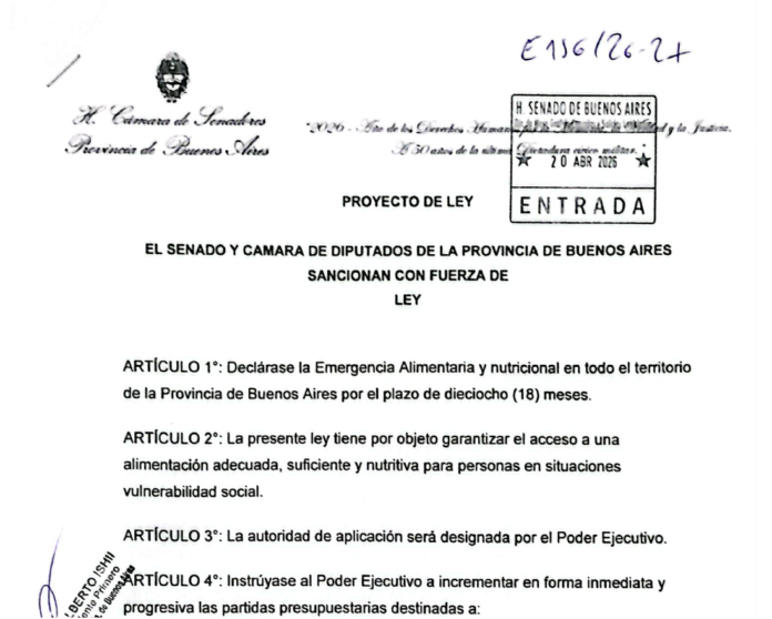 Ante el sostenido deterioro del poder adquisitivo y la creciente demanda en los sectores más vulnerables, el Vicepresidente Primero del Senado bonaerense, Dr. HC Mario Ishii, impulsó un proyecto de ley que busca blindar la asistencia alimentaria en todo el territorio provincial. La iniciativa propone declarar la emergencia alimentaria y nutricional por un año y medio, estableciendo mecanismos de actualización automática frente a la inflación.