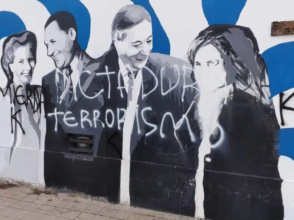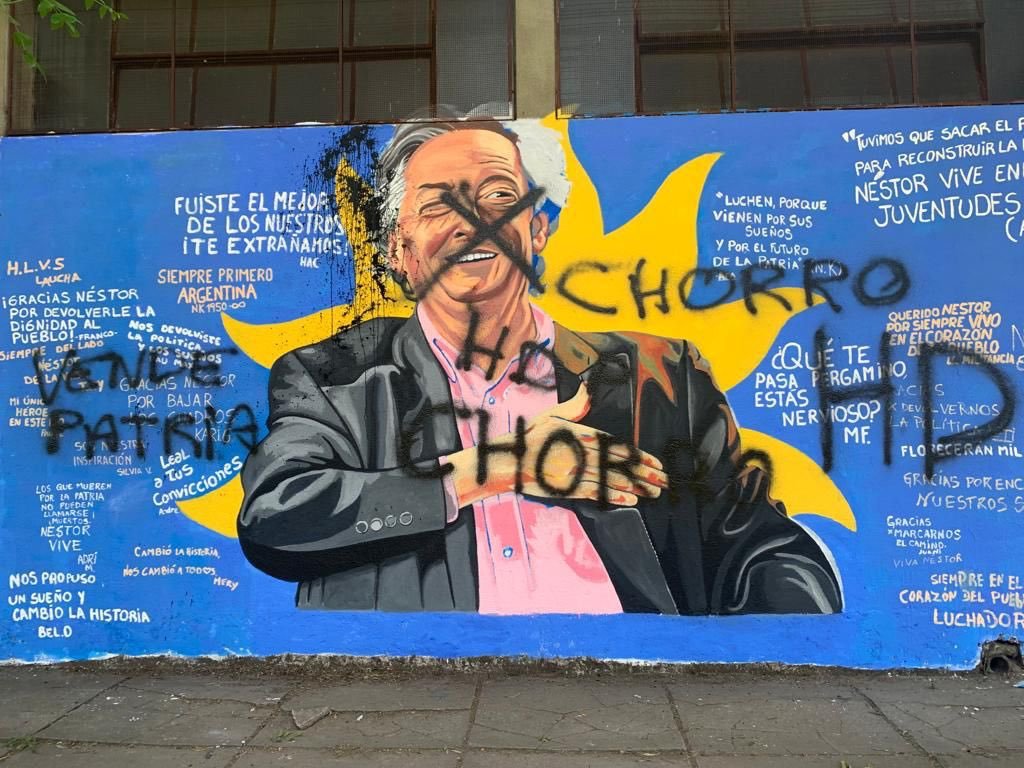 En otro tuit publicó fotos de otros murales (esta vez con la figura del expresidente Néstor Kirchner) también vandalizados y escribió: «Repudio enérgicamente este tipo de hechos en nuestro país».
