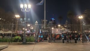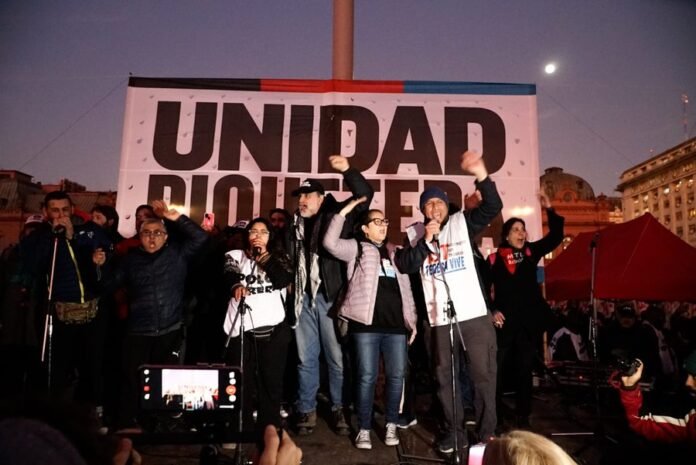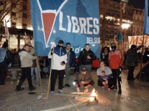 Militantes de organizaciones de izquierda agrupadas en la Unidad Piquetera (UP) mantendrán hasta mañana un acampe en la Plaza de Mayo de Buenos Aires, adonde hoy confluyeron en una multitudinaria movilización y protesta en reclamo de asistencia para jubilados y monotributistas y luego de haber entregado un petitorio con sus demandas en el Ministerio de Economía.
