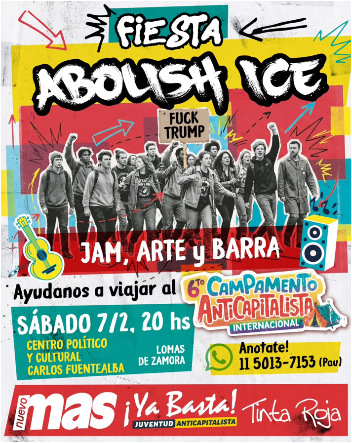 En un contexto global marcado por el avance de sectores de extrema derecha, la juventud organizada se prepara para una nueva edición del Campamento Anticapitalista Internacional. Con el objetivo de recaudar fondos para participar en este evento masivo, el próximo sábado se llevará a cabo una jornada cultural bajo la consigna «Abolish ICE» (Abolir el ICE).