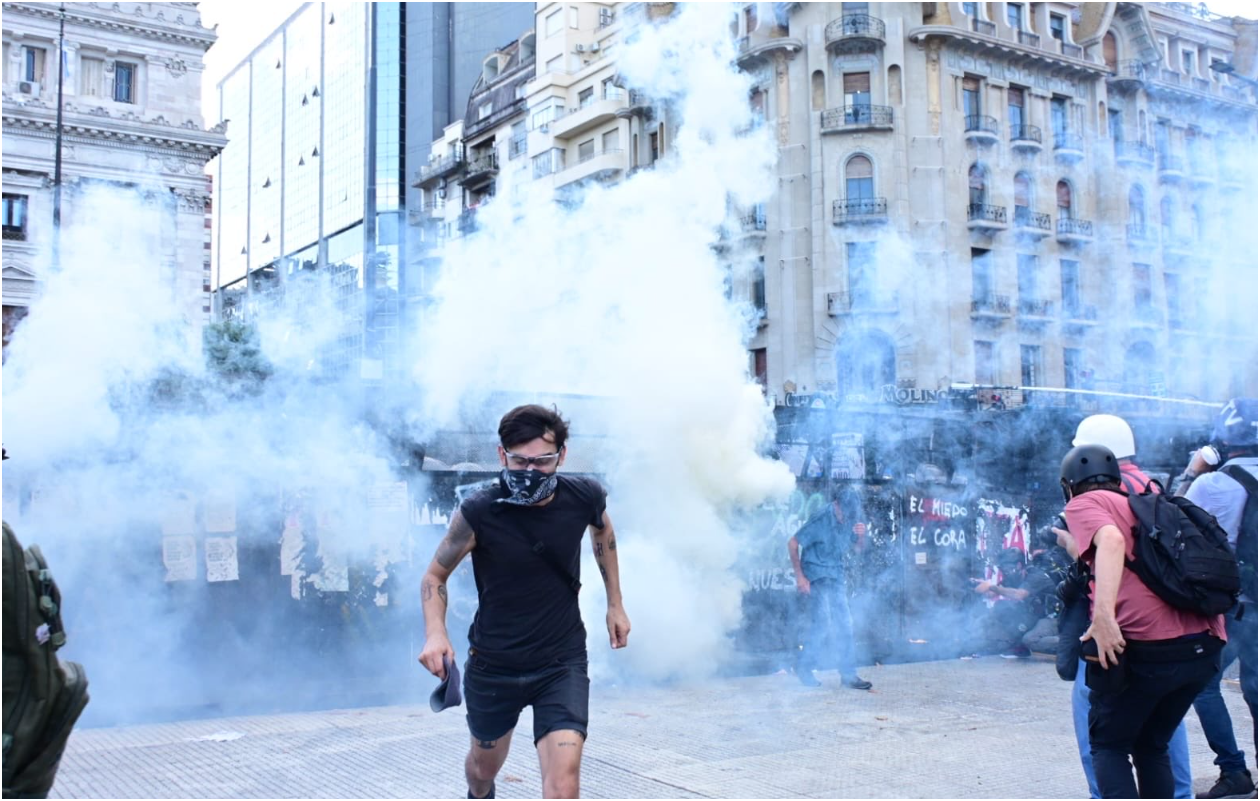 Se registraron ráfagas de gas pimienta y balas de goma en la intersección de Rivadavia y Rodríguez Peña.