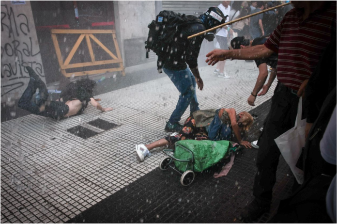 Hacia las 18:30, la situación escaló cuando un grupo de personas fue identificado realizando un «robo piraña» en medio del caos, aprovechando la vulnerabilidad de otros manifestantes.