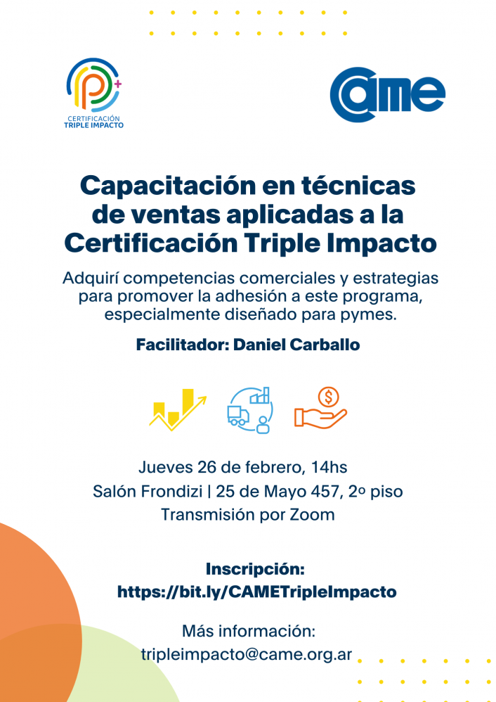 Los interesados en participar de la capacitación o en postularse como embajadores pueden inscribirse a través de los canales oficiales de CAME o su plataforma de Triple Impacto.
