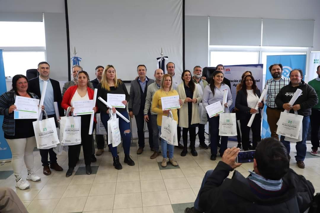 Se realizó en la Estación Experimental Agropecuaria AMBA del INTA la entrega de diplomas de la 2da. Edición de la formación para el trabajo y diplomatura de extensión universitaria “Promotores Agroecológicos”, de la Cuenca Matanza Riachuelo que llevan adelante, en conjunto, la Autoridad de Cuenca Matanza Riachuelo (ACUMAR), la Universidad Nacional de Hurlingham (UNAHIUR), el Ministerio de Trabajo, Empleo y Seguridad Social de la Nación, y el INTA.