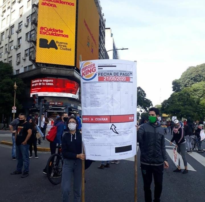 «A muchos de nosotros no nos pagaron aún y las patronales nos amenazan con despidos, suspensiones. Un amplio sector no pudo acceder al cobro del IFE y se hace insostenible seguir viviendo así. Sin embargo, las multinacionales como MacDonalds cobran el ATP que les otorgó el Gobierno de Alberto Fernández, pero nos realizan descuentos brutales en nuestros magros salarios, recibiendo muchos de nosotros cero pesos en nuestros recibos de sueldo. Ellos dicen que el subsidio no es para los trabajadores y las trabajadoras, sino para la empresa que tiene pérdidas. Una burla.”