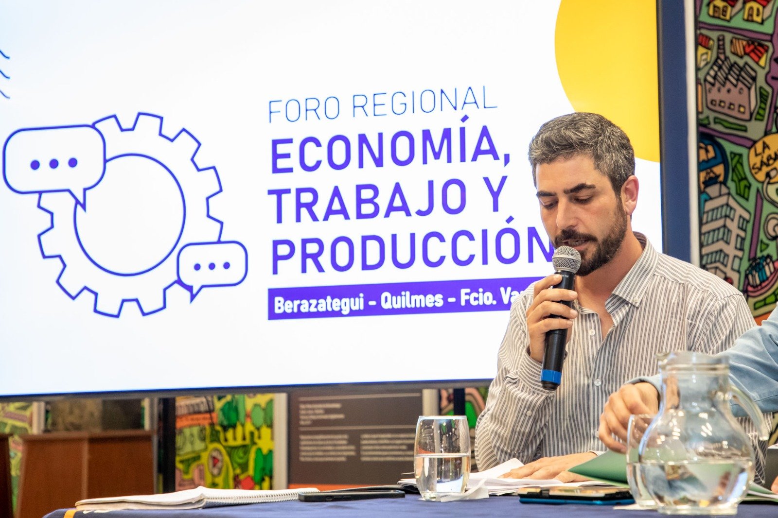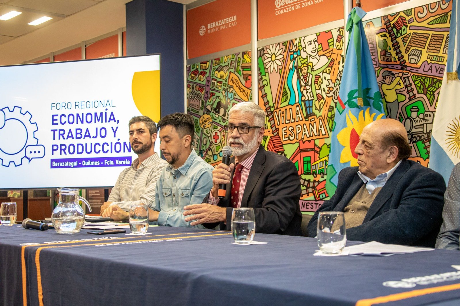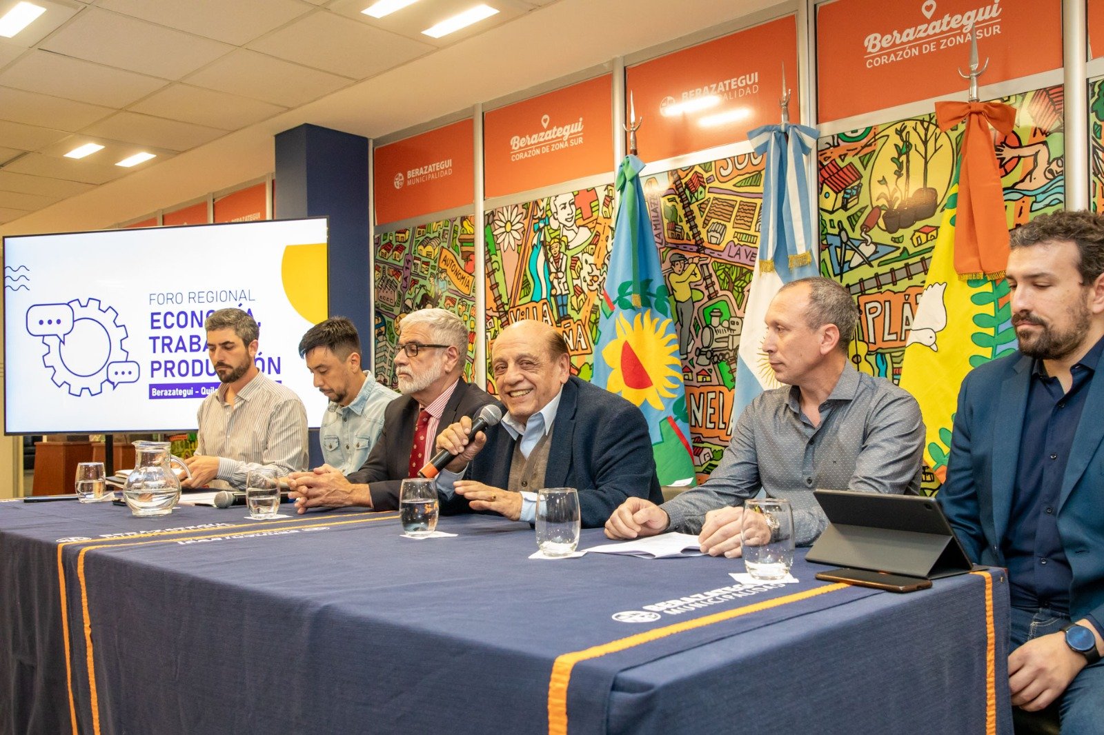 El intendente, Juan José Mussi, fue el anfitrión y convocante de un foro que se realizó en la sala de conferencias de la Municipalidad, un salón lleno de referentes locales políticos, sindicales, sociales y empresariales.