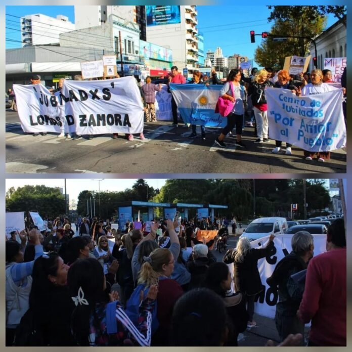 Bajo la consigna “Para la mano, Milei”, jubilados y jubiladas de Lomas de Zamora se movilizaron en la Plaza Grigera para exigir mejoras en sus condiciones de vida y cuestionar las políticas del gobierno nacional.