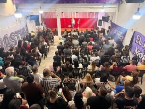 Si bien, el concejal libertario no hizo mención alguna a una posible candidatura por la intendencia y el objetivo del evento era brindar con el equipo por fin de año, toda su presentación fue hecha en “modo candidato”, más aún cuando indicó: “Es una falacia decir que hay que recuperar Lanús, La Libertad Avanza nunca gobernó el distrito pero en el 2027 lo va a hacer por primera vez”.